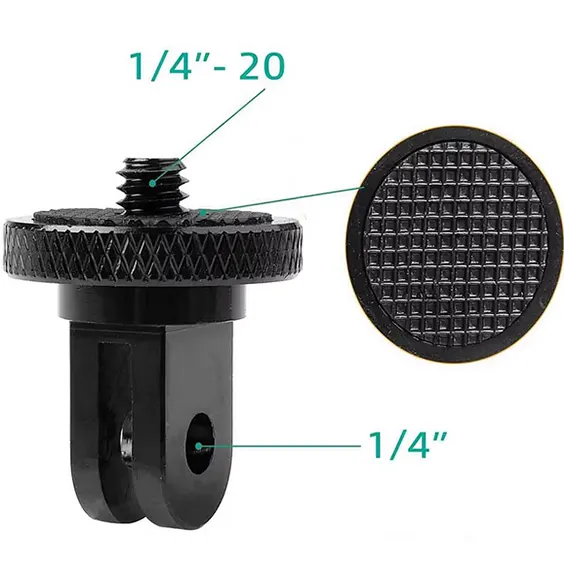 Адаптер с резба 1/4 за екшън камери позволява закрепването на камери или аксесоари със стандартна 1/4-инчова резба към монтажните системи на GoPro.